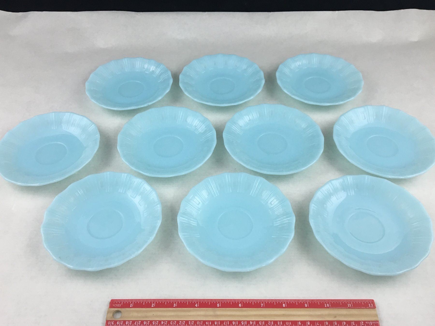 LOT OF 10 VINTAGE PYREX DELPHITE 6" SAUCERS