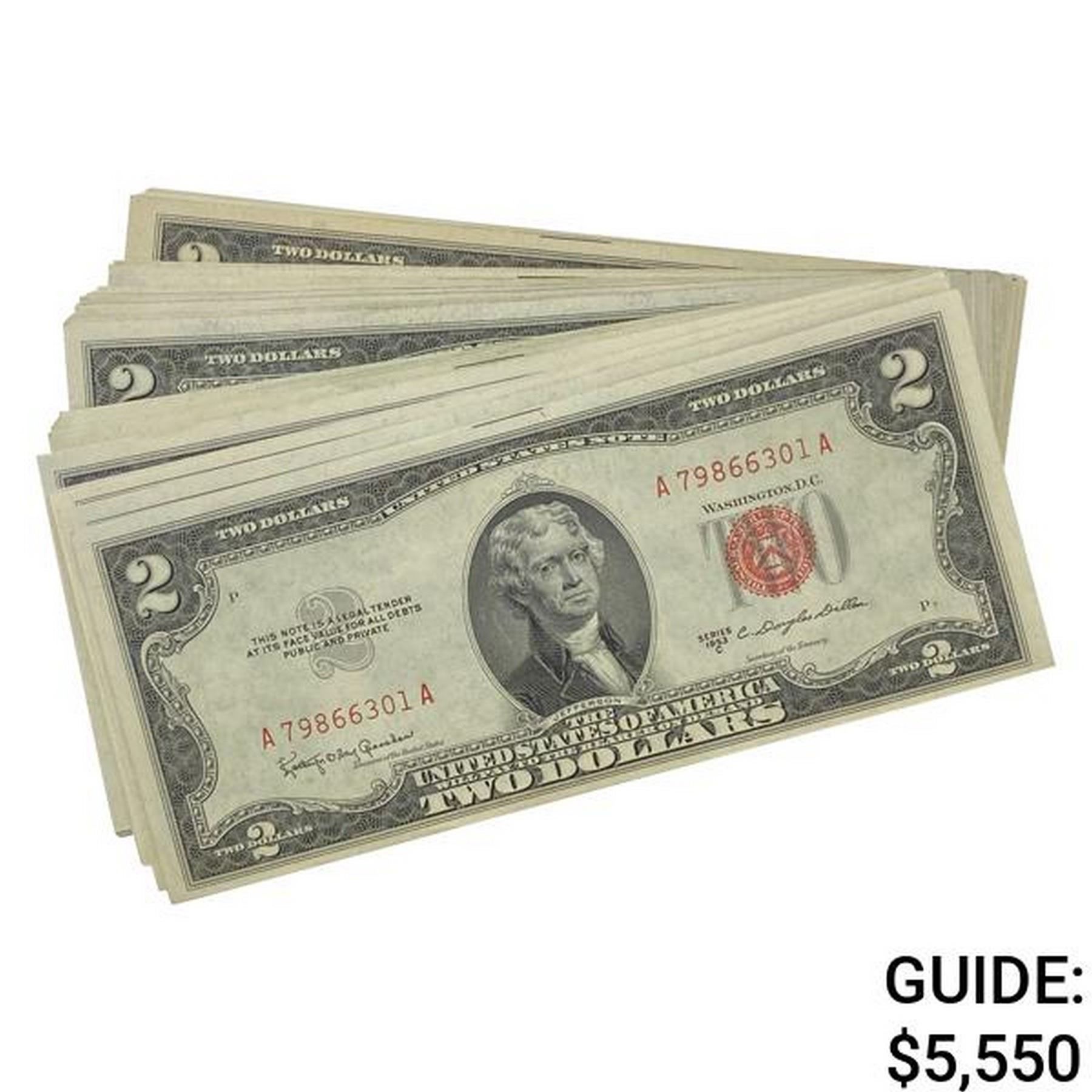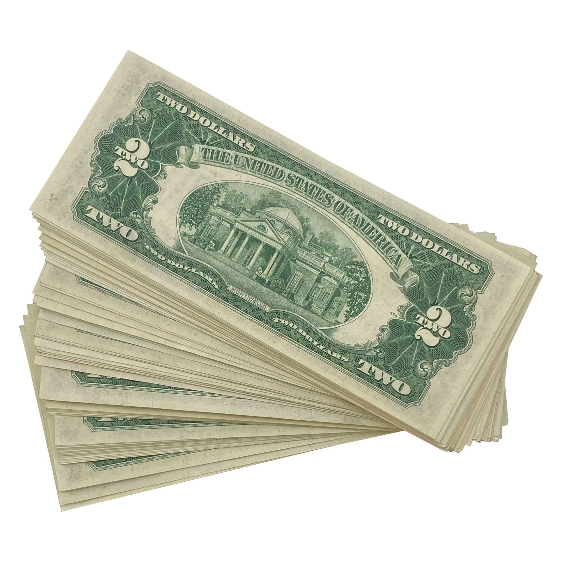 LOT OF (100) 1953 $2 LEGAL TENDER USN'S GEM UNC