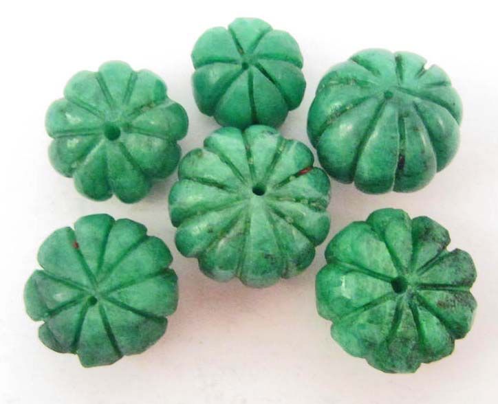 Natural. Carved into floral shapes and drilled for jewelry making