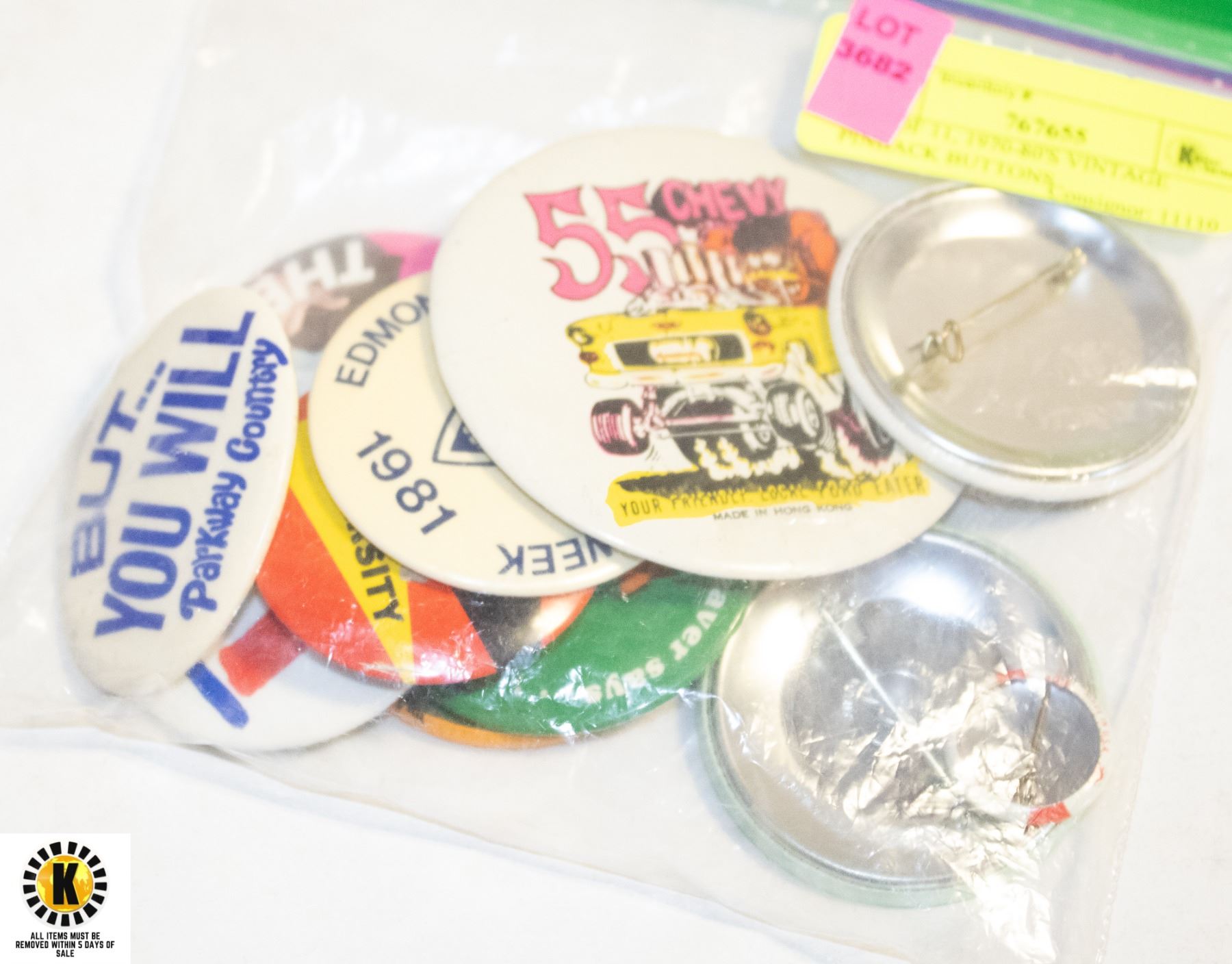 LOT OF 11, 1970-80'S VINTAGE PINBACK BUTTONS