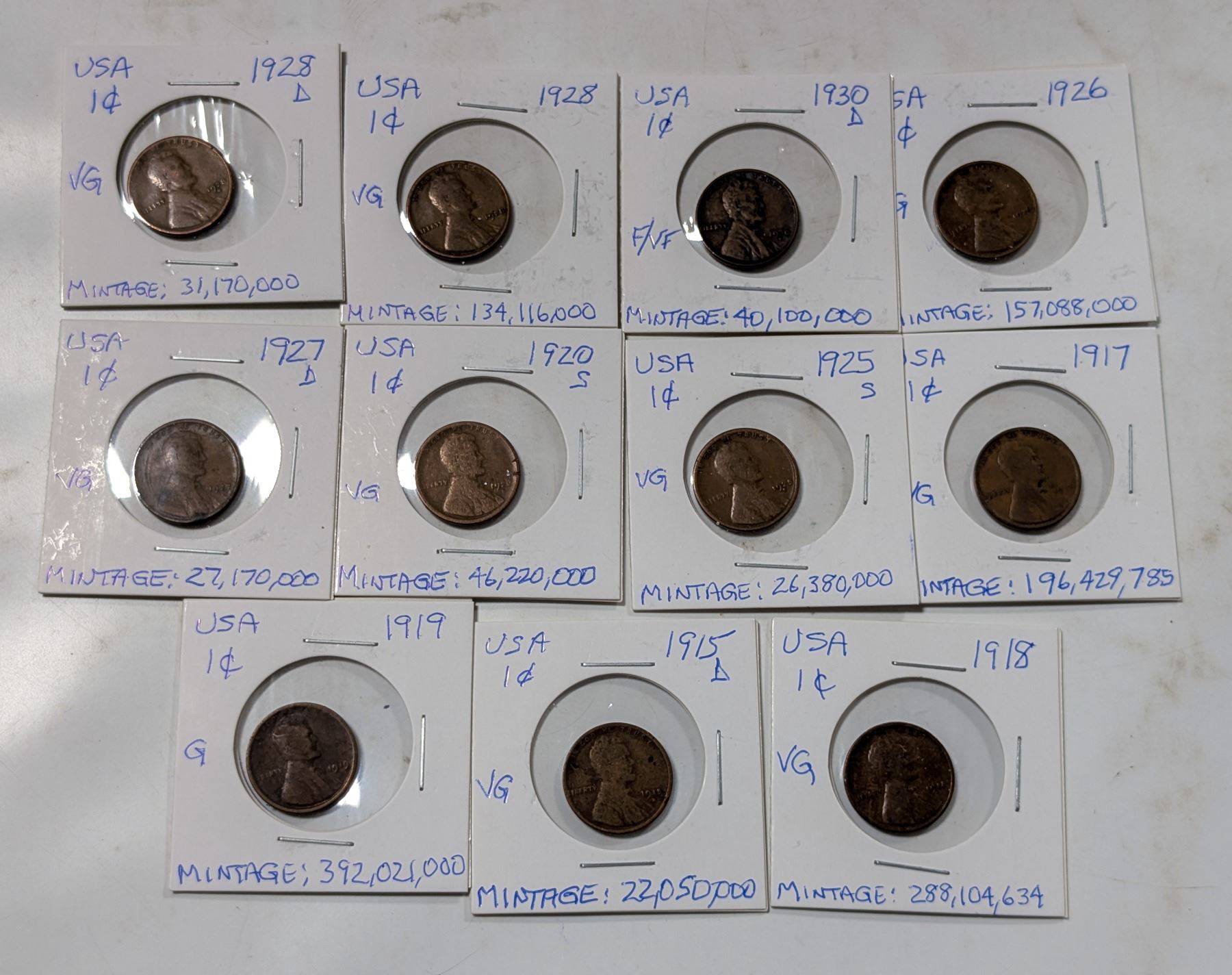LOT OF 11 USA LINCOLN WHEAT PENNIES