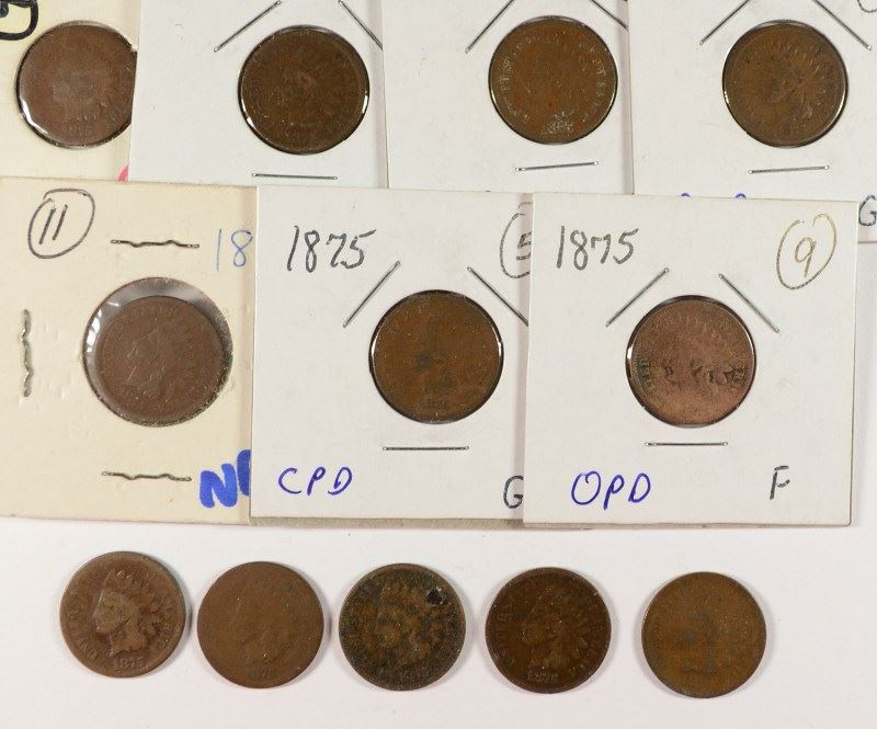 LOT OF ( 12 ) 1875 INDIAN HEAD CENTS, SOME AG, SOME GOOD