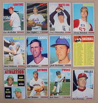 LOT OF 12 1970 TOPPS BASEBALL CARDS - Incl. Jack Dilauro, Walt Williams, Jim Bunning, Rookie Stars Athletics, More!