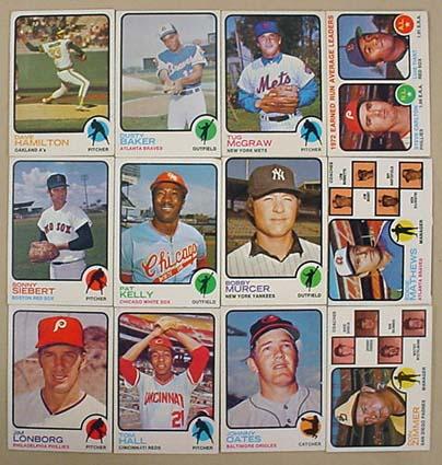 LOT OF 12 1973 TOPPS BASEBALL CARDS - Incl. ERA Leaders w/ Steve Carlton and Luis Tiant, Tug McGraw, Dusty Baker, More!