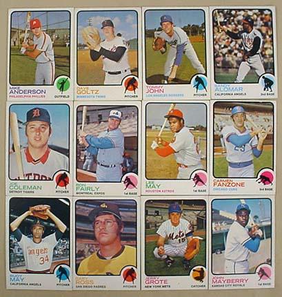 LOT OF 12 1973 TOPPS BASEBALL CARDS - Incl. Sandy Alomar, Tommie John, More!