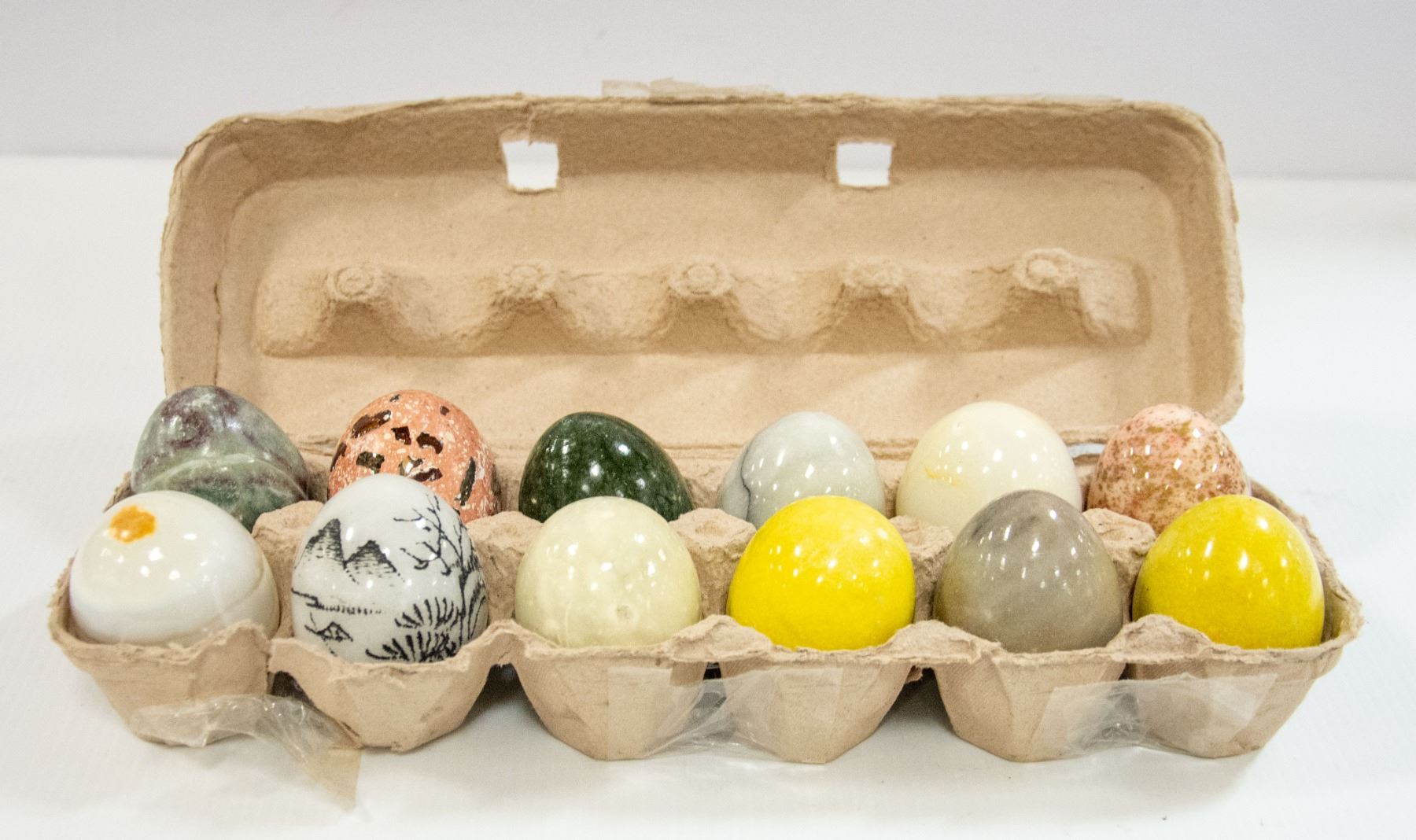 LOT OF 12 ASSORTED STONE EGG DECOR PIECES