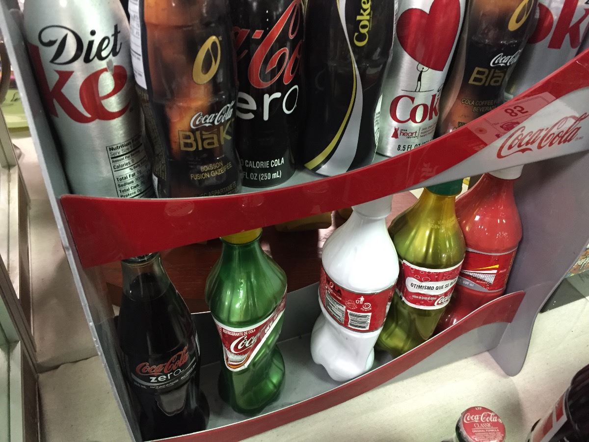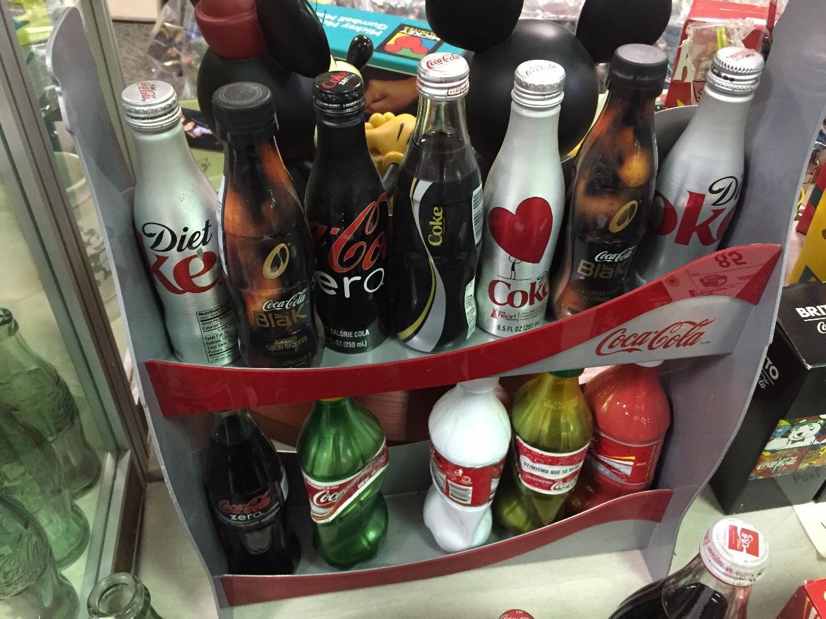 LOT OF 12 COLLECTABLE COCA-COLA BOTTLES WITH STAND INCLUDING: COKE BLACK, COKE ZERO & MORE
