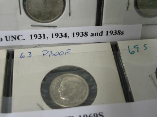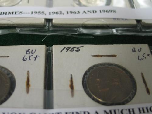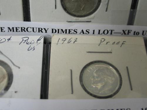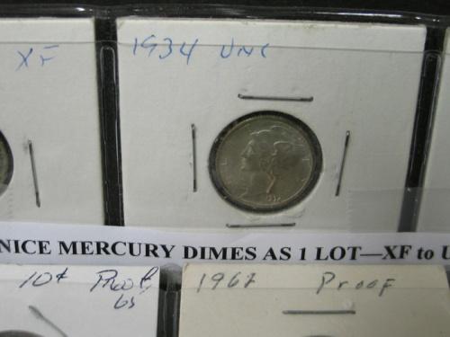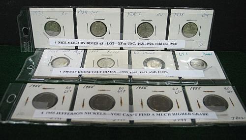 LOT OF 12 JEFFERSON NICKELS, MERCURY DIMES, AND ROOSEVELT DIMES. Consists of four 1955 Jefferson Nickels (All BU), four Mercury Dimes (1931, 1934, 1938, and 1938S-all XF to Unc.), and four Proof Roosevelt Dimes (1955, 1962, 1963, and 1969S).