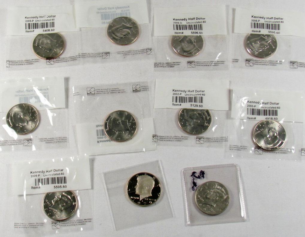 LOT OF 12 KENNEDY HALF DOLLARS - 11 ARE UNC. - 1979, 1996, 2000, 2003, 2002, 2005