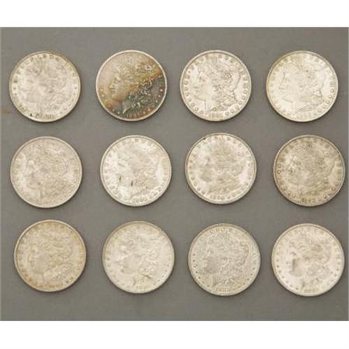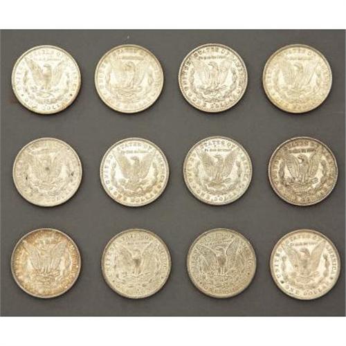 <B>LOT OF (12) MORGAN SILVER DOLLARS 1879-1886</B></I> - Very nice lot of Morgan type silver dollars. Minted from 1878-1921. (1) 1879-P, (4) 1880-O's, (1) 1881-O, (2) 1882-O's, (2) 1884-O's, (1) 1885-O, (1) 1886-P. (O) is New Orleans-mint, (P) Philadelphia-mint.<BR><BR><B>Condition:</B></I> Lot average grade, Extra Fine-Almost Uncirculated.<BR><BR><b>Shipping:</b> Miscellaneous Collectibles, Smal (<a target="_blank" href="http://www.heritageauctions.com/common/shipping.php">view shipping information</a>)