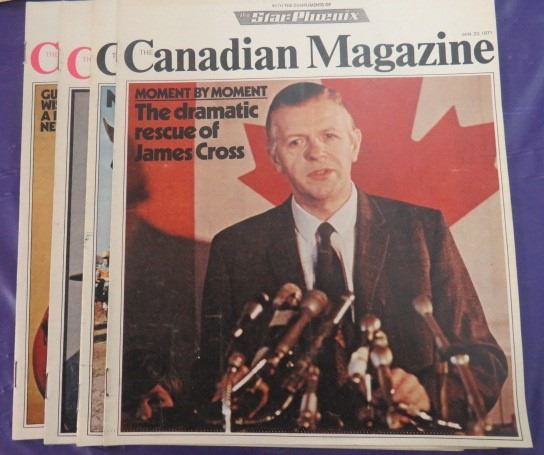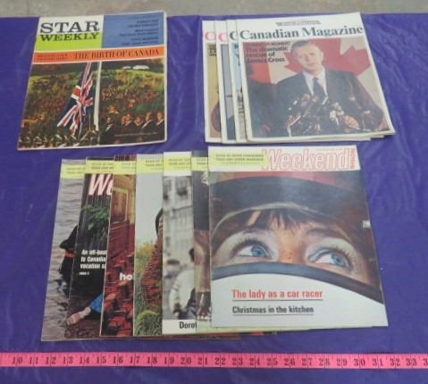 LOT OF 12 NEWSPAPER MAGAZINES (VINTAGE) *7 X THE WEEKEND 1971, 4 X CANADIAN MAGAZINE 1971 & 1 STAR WEEKLY 1964*