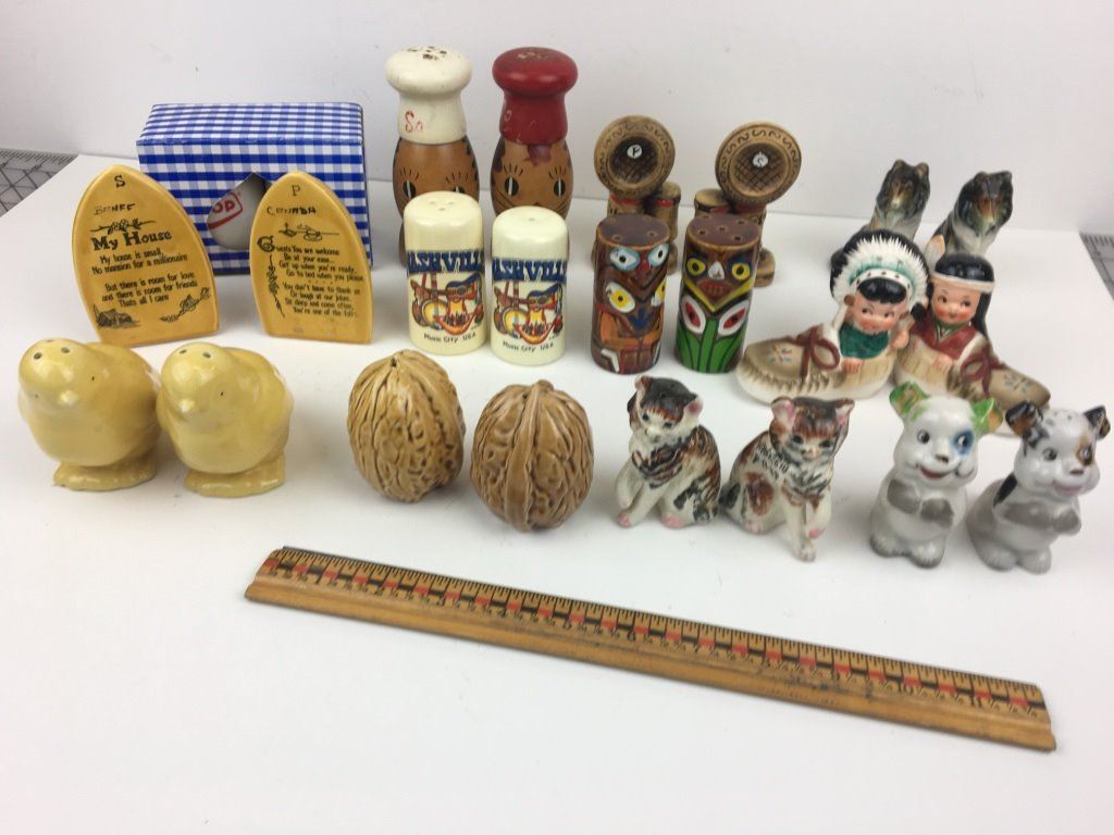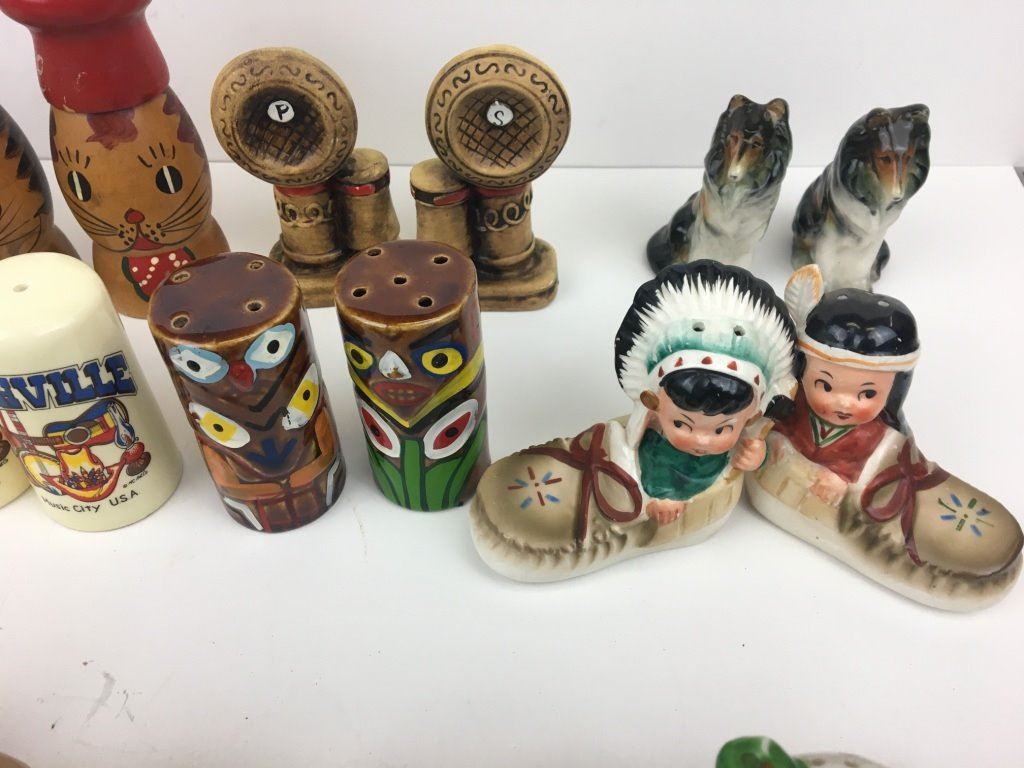 LOT OF 12 SALT AND PEPPER (CO-OP, TOTEM POLES, NATIVES, TELEPHONES…)