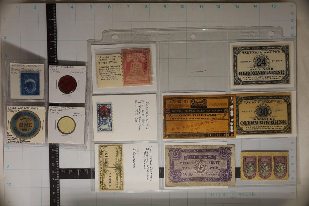 INCLUDING MOTOR VEHICLE TAX STAMP, MARGARINE STAMPS, FRUIT, INTERNAL REVENUE FROM THE PHILIPPINES ETC...