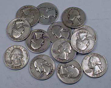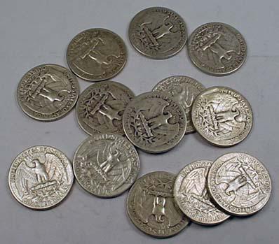 LOT OF 13 90% SILVER WASHINGTON QUARTERS - 1964 OR EARLIER - UNSEARCHED!!