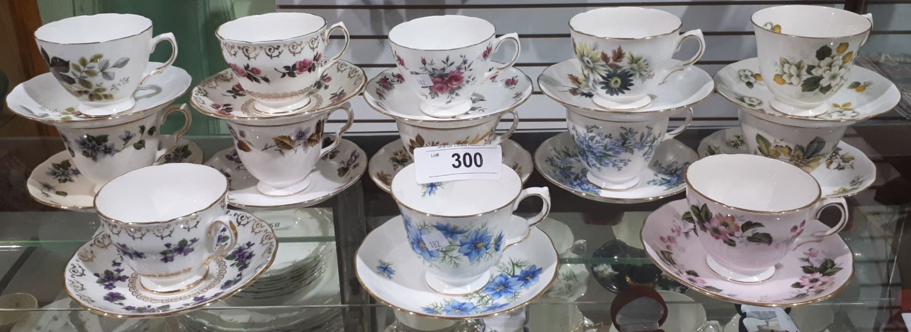 LOT OF 13 ENGLISH BONE CHINA TEACUPS/SAUCERS