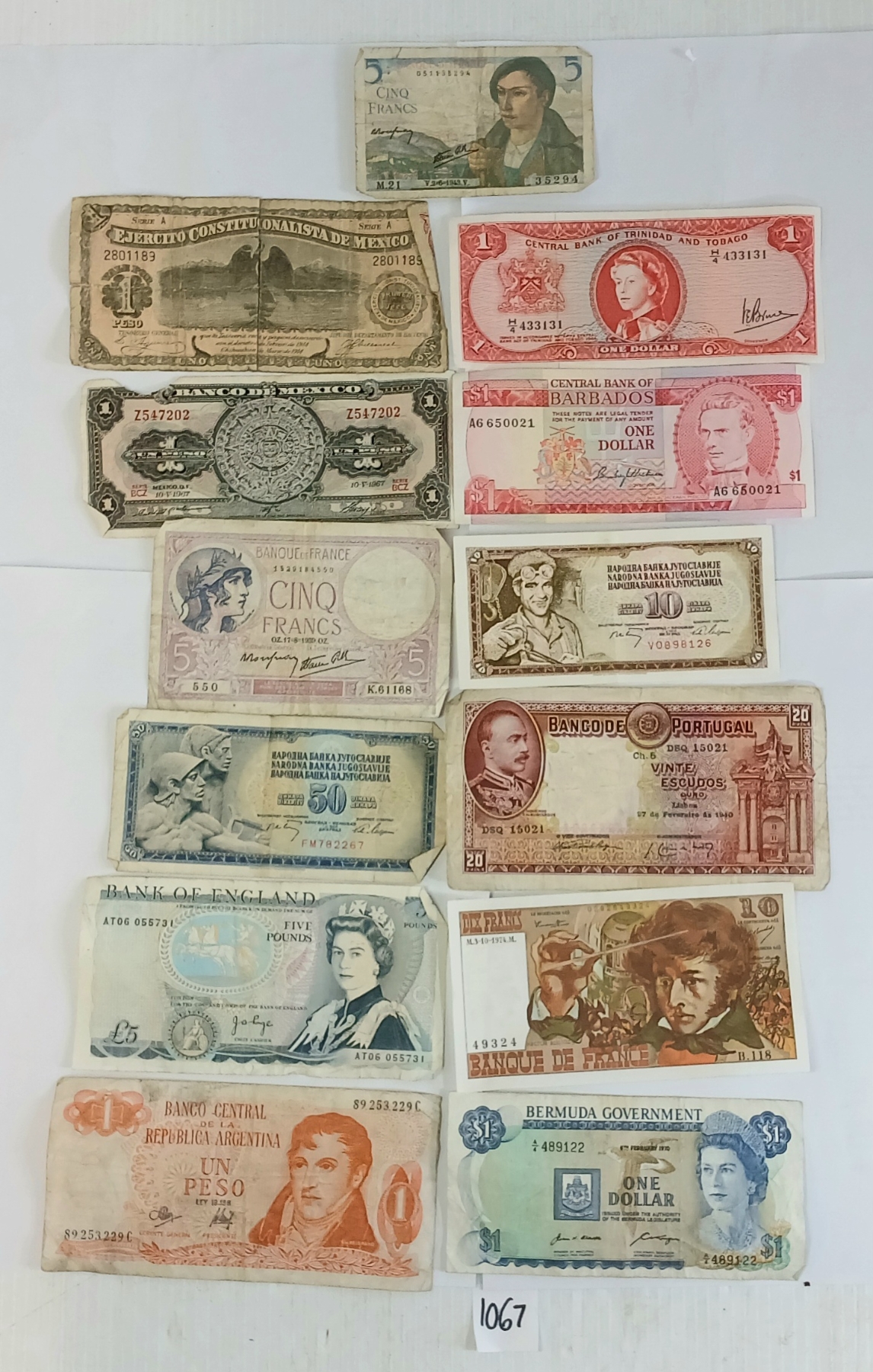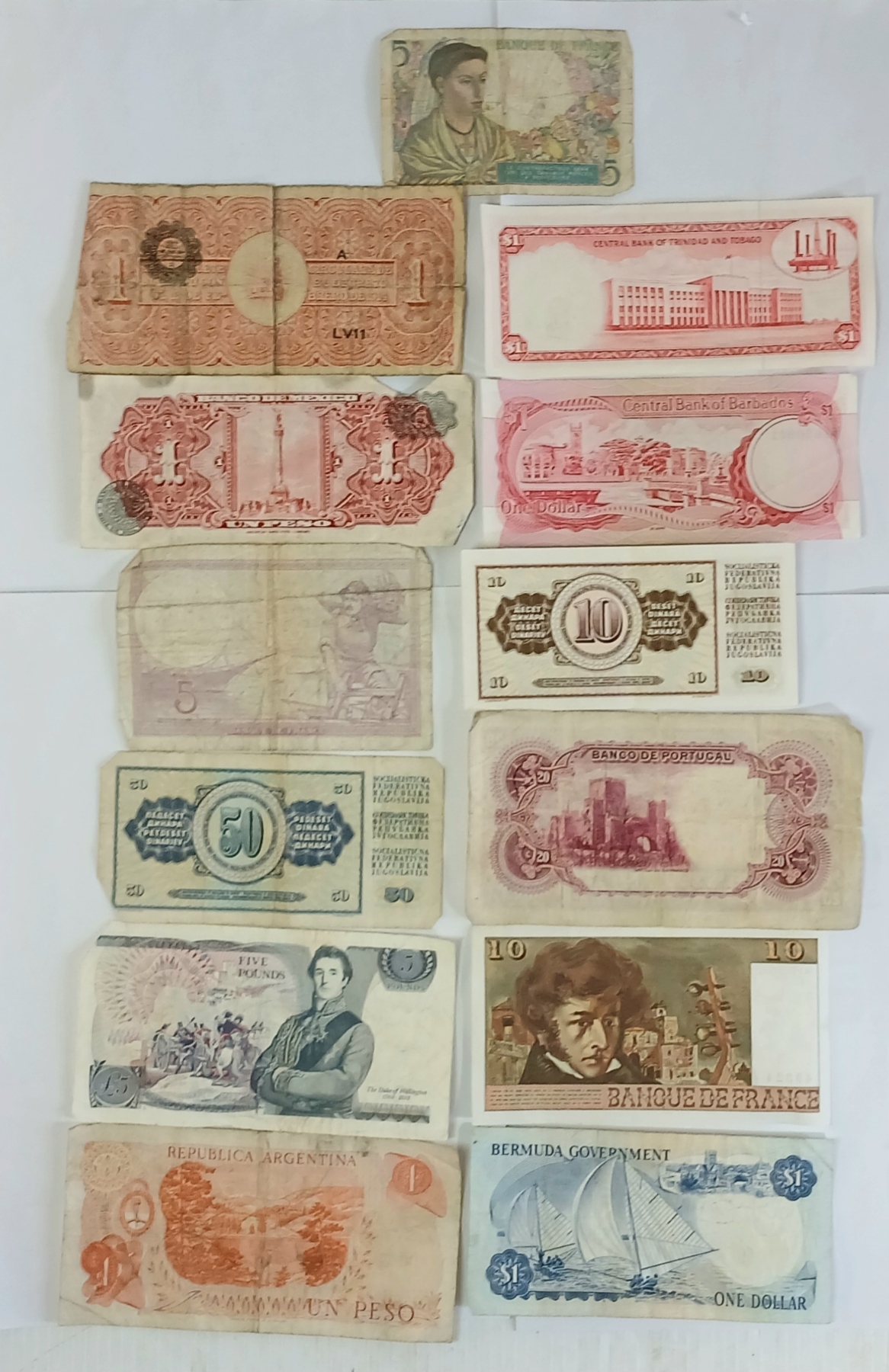 LOT OF 13 - WORLD BANK NOTES - INCL FRANCE, PORTUGAL, BERMUDA, MEXICO, ETC