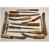 LOT OF 14 OLD WEST BUFFALO SKINNING KNIVES AND SHARPENERS - Some blades are maker marked. Most have wood handles, some w/ stag handles