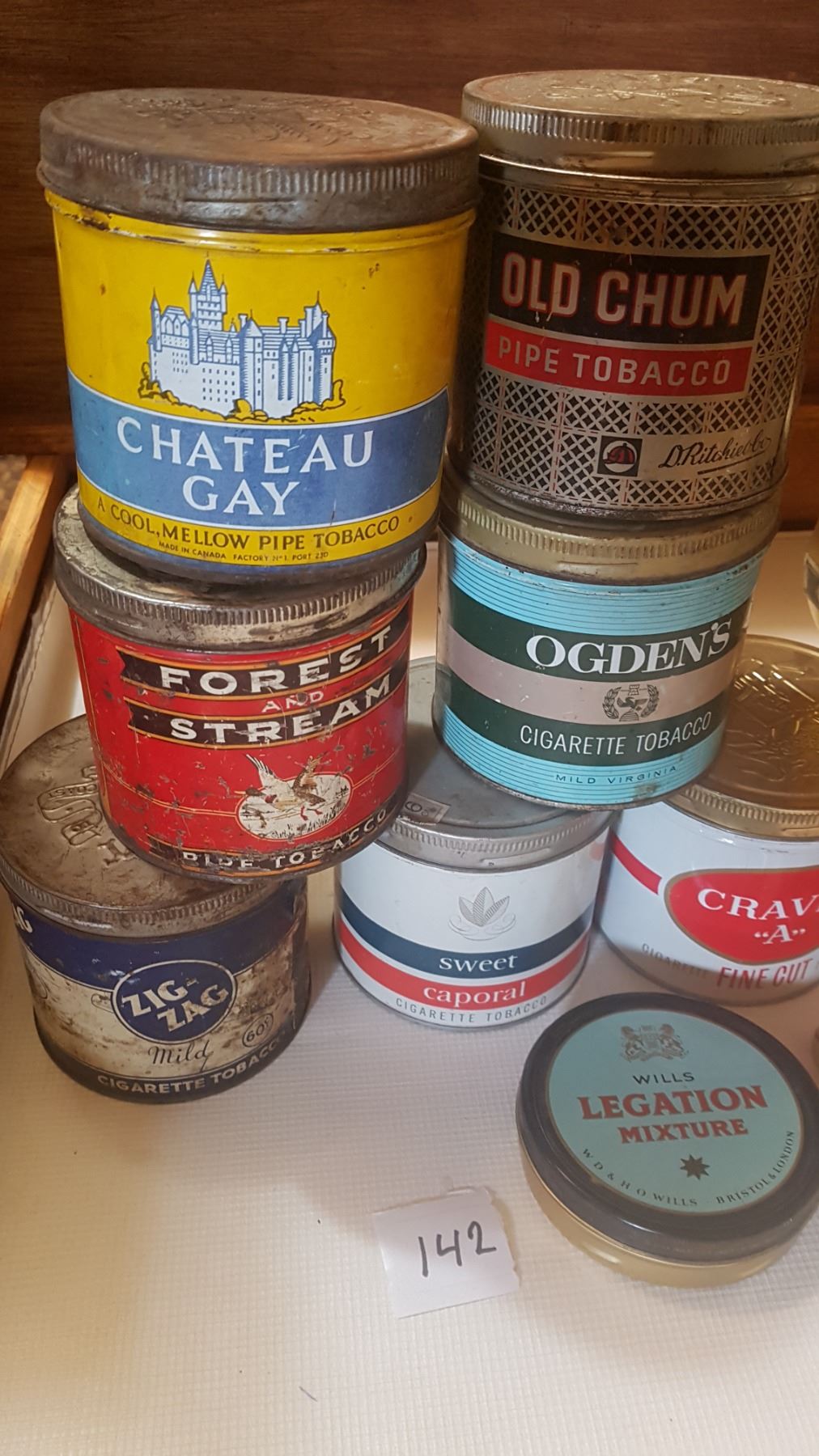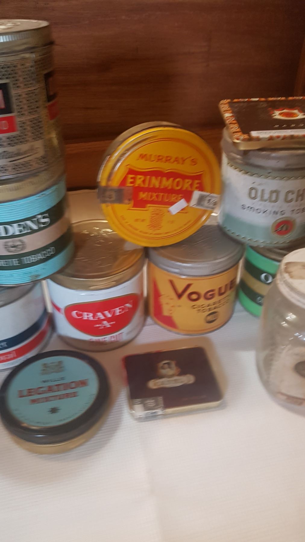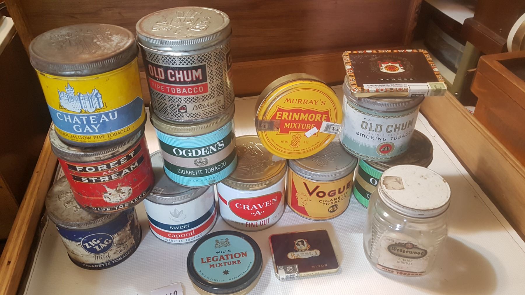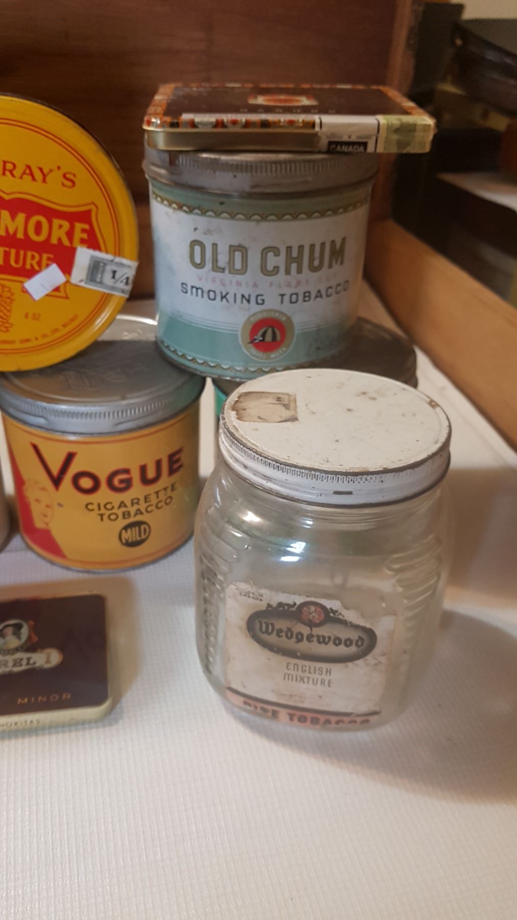 LOT OF 14 TOBACCO TINS + RARE WEDGHEWOOD GLASS PIPE TOBACCO