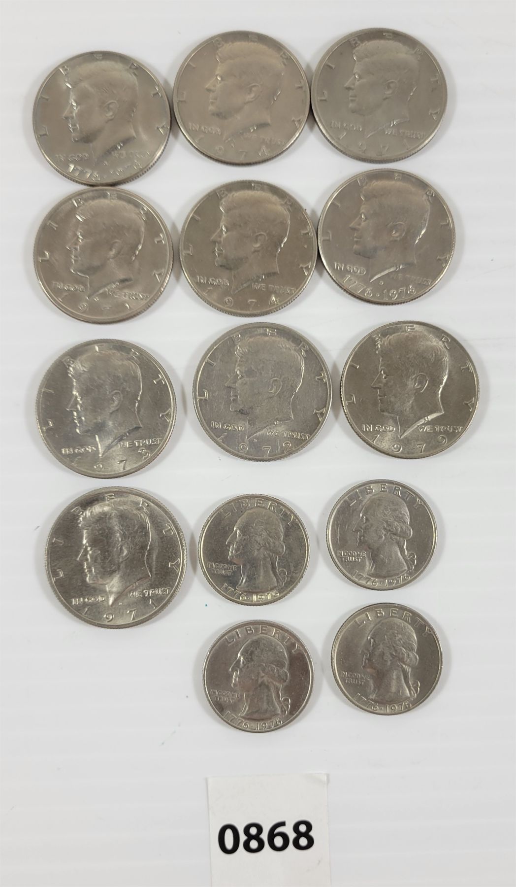 LOT OF 14 - US HALF DOLLARS & QUARTERS - INCL 1974 & 1976, ETC.