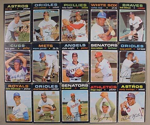 LOT OF 15 1971 TOPPS BASEBALL CARDS - Incl. Boog Powell, Bob Tillman, Carlos May and Tony Taylor