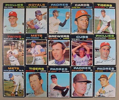 LOT OF 15 1971 TOPPS BASEBALL CARDS - Incl. Mickey Lolich, Matty Alou, Ollie Brown and Buck Martinez