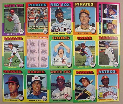 LOT OF 15 1975 TOPPS BASEBALL CARDS - Incl. Duffy Dyer, Larry Milbourne, ERA Leaders w/ Jim "Catfish" Hunter, More!