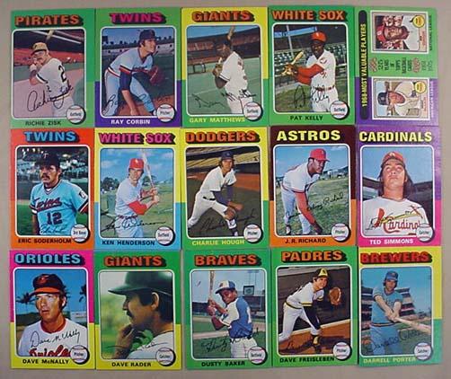 LOT OF 15 1975 TOPPS BASEBALL CARDS - Incl. Richie Zisk, Charlie Hough, Dusty Baker, 1968 MVP's, More!