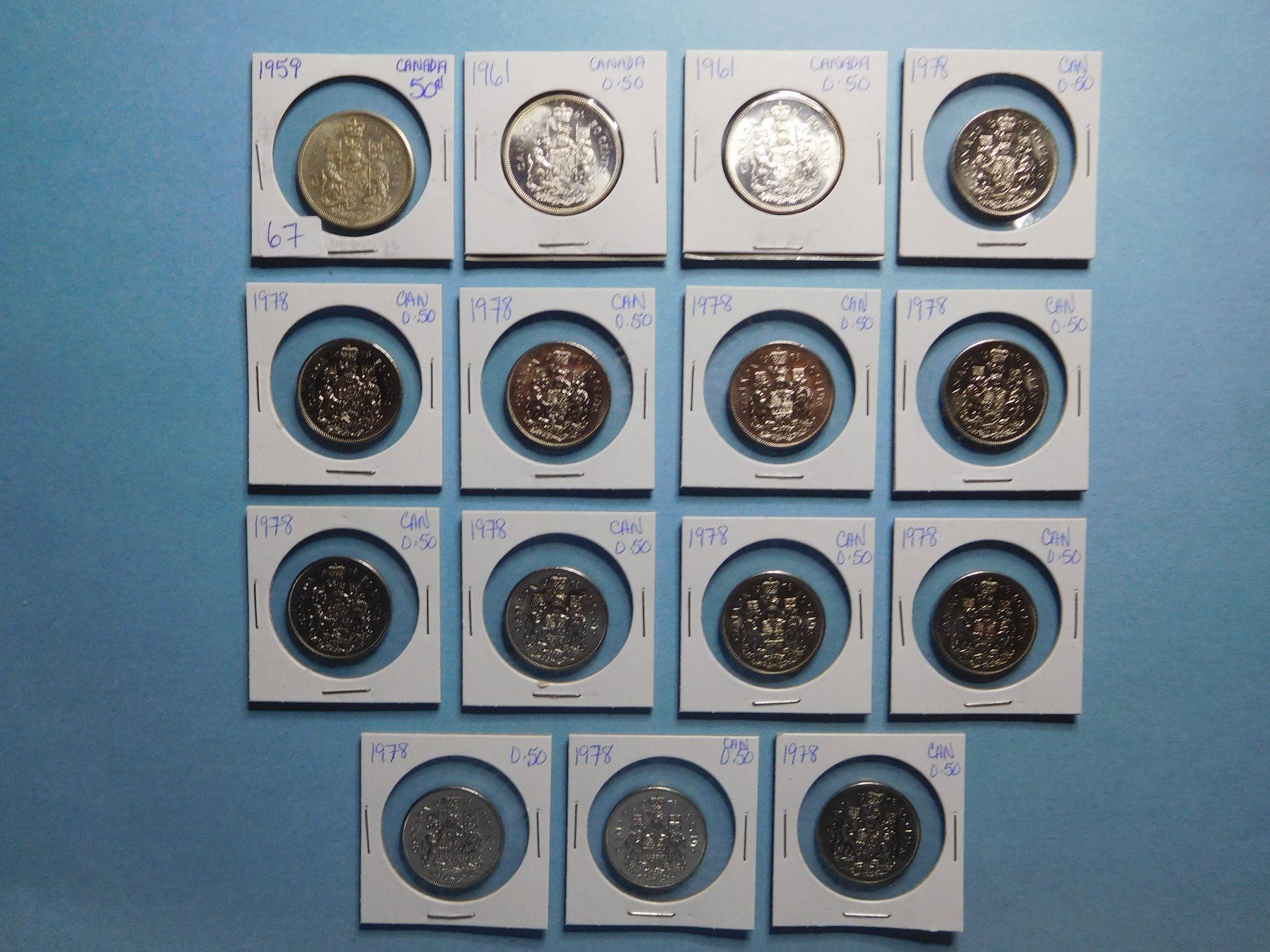 LOT OF 15 FIFTY CENT PIECES 1959, 1961 x 2, 1978 x 12