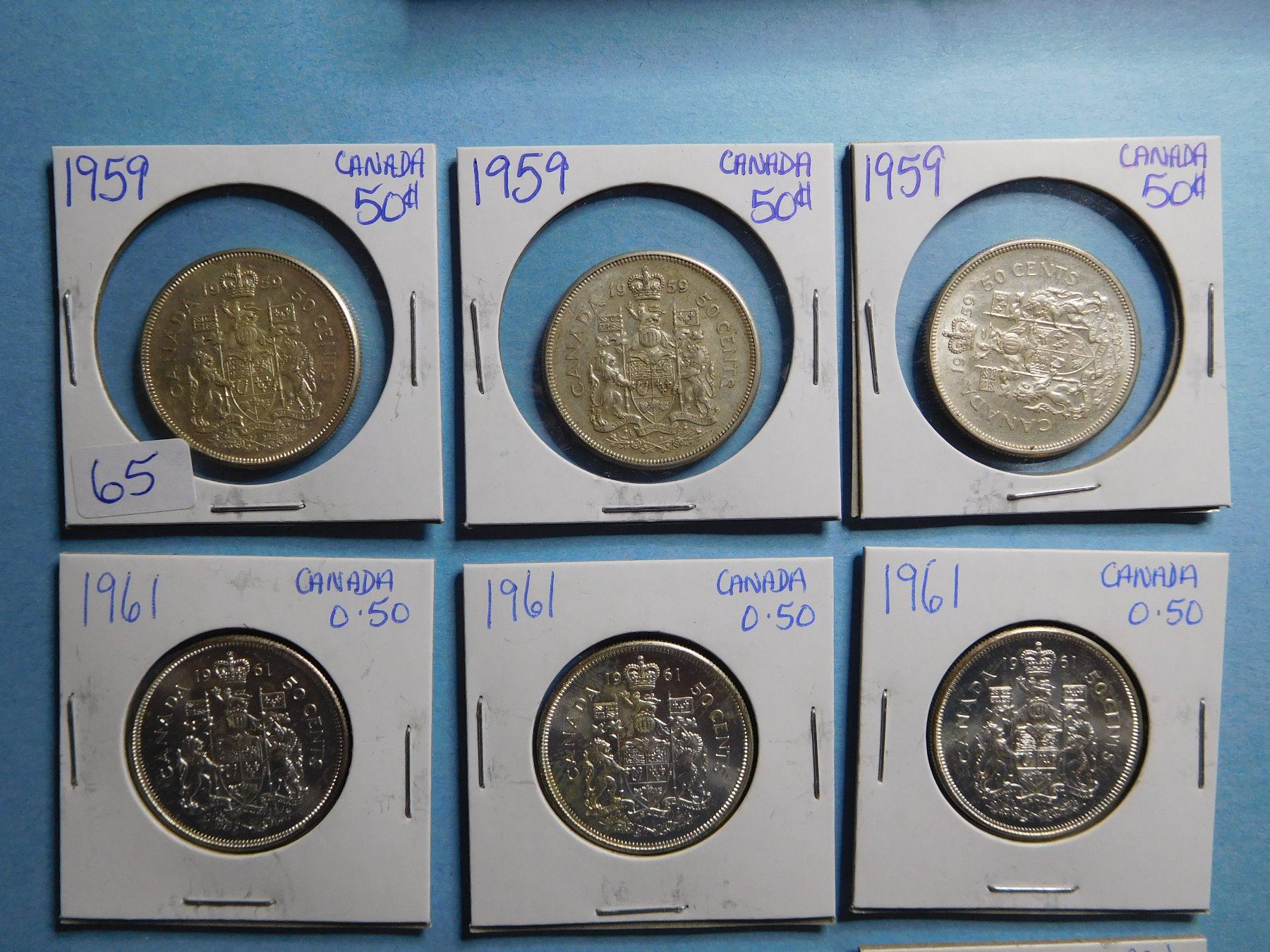 LOT OF 15 FIFTY CENT PIECES 1959 x 3, 1961 x 3, 1963 x 2, 1974, 1978 x 3, 1980 x 3