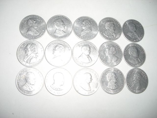 LOT OF 15 TOTAL *PRESIDENT* TOKEN COINS-ALL FOR 1 MONEY!! TOKENS CAME OUT OF SAFE!! ***Coin, Currency & All Items Listed in this auction - Grades, Conditions and Values are not Safe Deposit Coins LLC Responsibilty. Grades, Condition and Values are determined by Consigner(s) & Buyers ONLY***