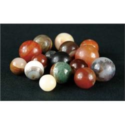 LOT OF 16 AGATE MARBLES. This large lot of marbles range in sizes from 1/2” to 3/4”; half are hand cut. CONDITION: Most in very good condition. WB 1-4651-34 (100-200)