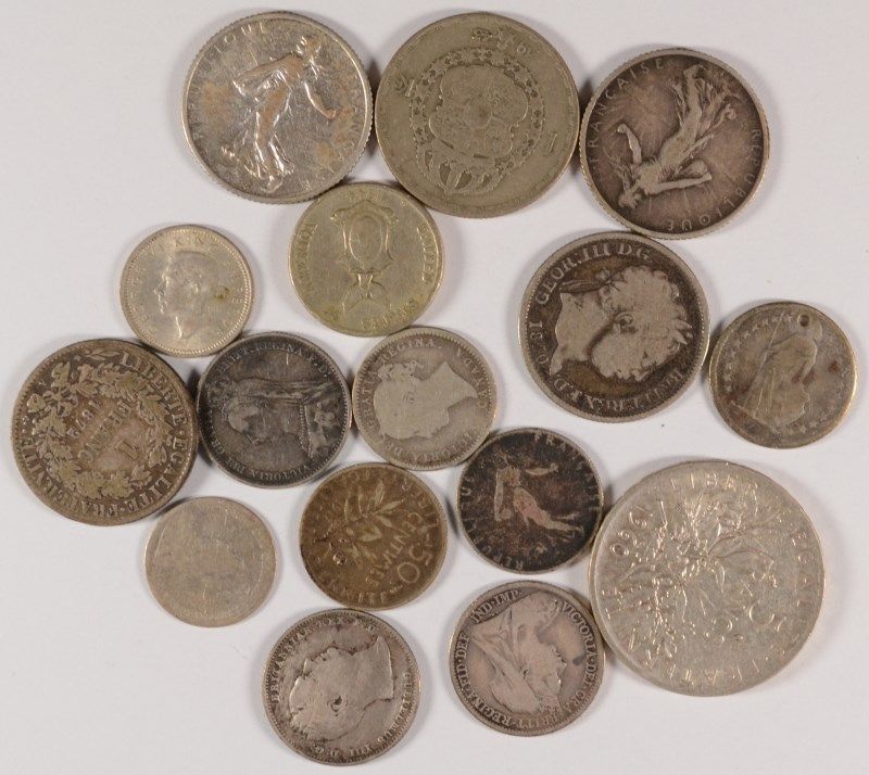 LOT OF ( 16 ) FOREIGN SILVER COINS, SOME OLDER DATES