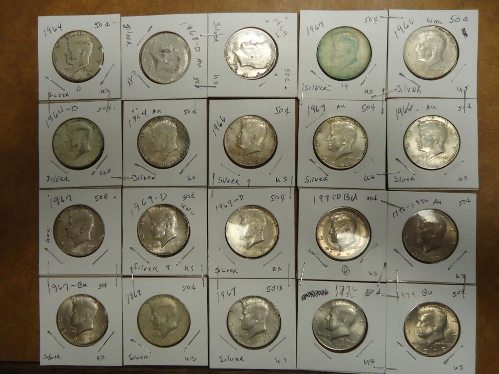 4-90% SILVER, 12-40% SILVER JOHN F. KENNEDY HALVES AND 4- UNC CLAD'S