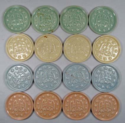 LOT OF 16 RETRO FRANKOMA CERAMIC COASTERS - Some condition issues. Each approx. 3" diameter.