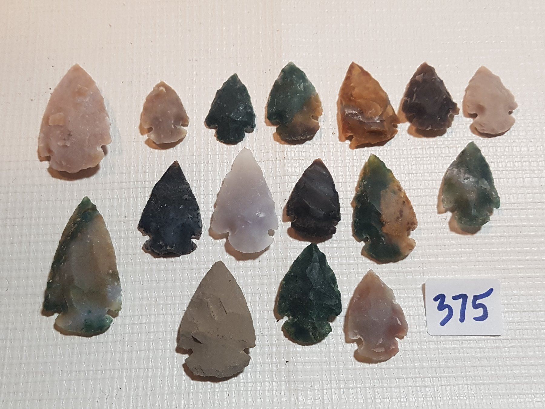LOT OF 16 SHARPENED FIELD STONES (14 ARE 1" LONG AND 2 ARE 2" LONG)