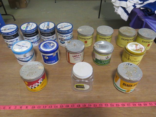 LOT OF 16 TOBACCO TINS (PLAYER'S LIGHT, DOMINION, SWEET CAPORAL, ETC)