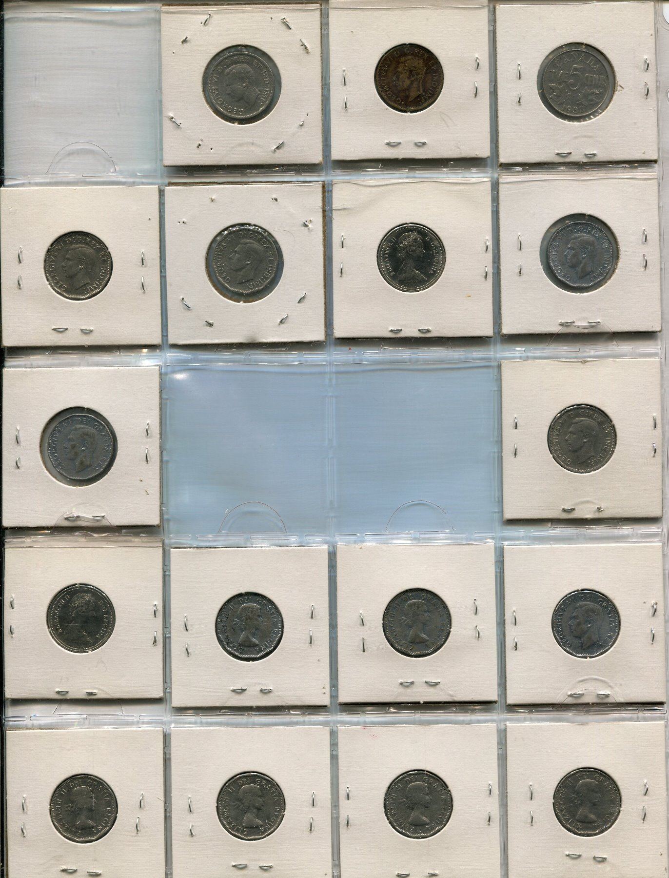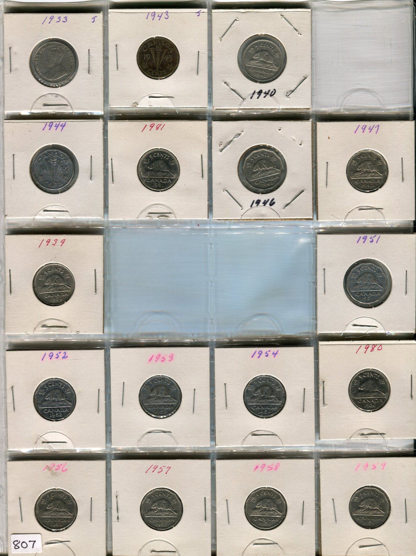 LOT OF 17- FIVE CENT COINS (CANADA) *ASSORTED DATES 1933 TO 1981* (HAS 1943 AND 1944 VICTORY INCLUDED)