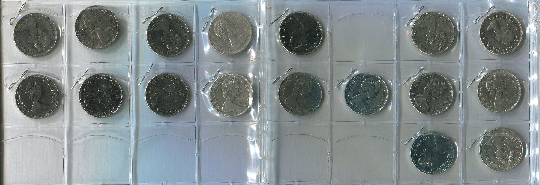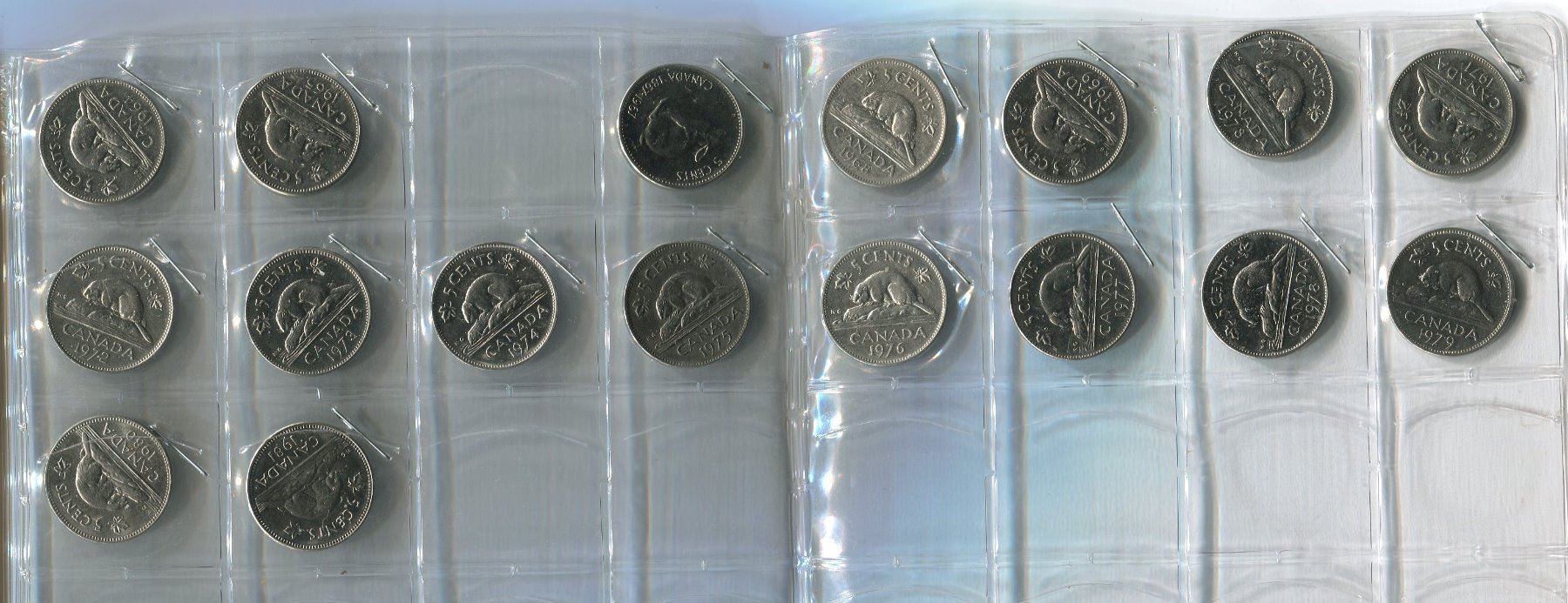 LOT OF 17-FIVE CENT COINS (CANADA) *DATED 1964 AND ON* (IN SLIP E-Z PACKAGE)