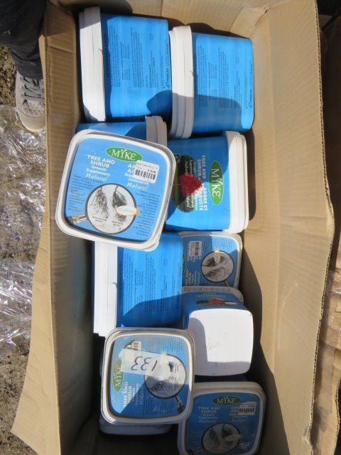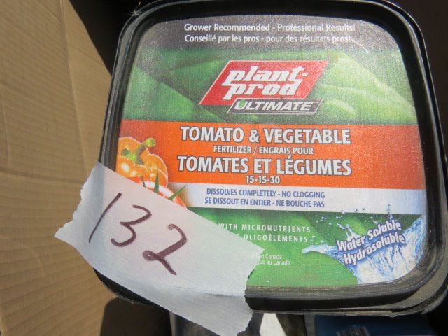 LOT OF 17 MIXED CONTAINERS ( 12 TREE AND SHRUB) *7 TOMATO AND VEGETABLE FERTILIZER)