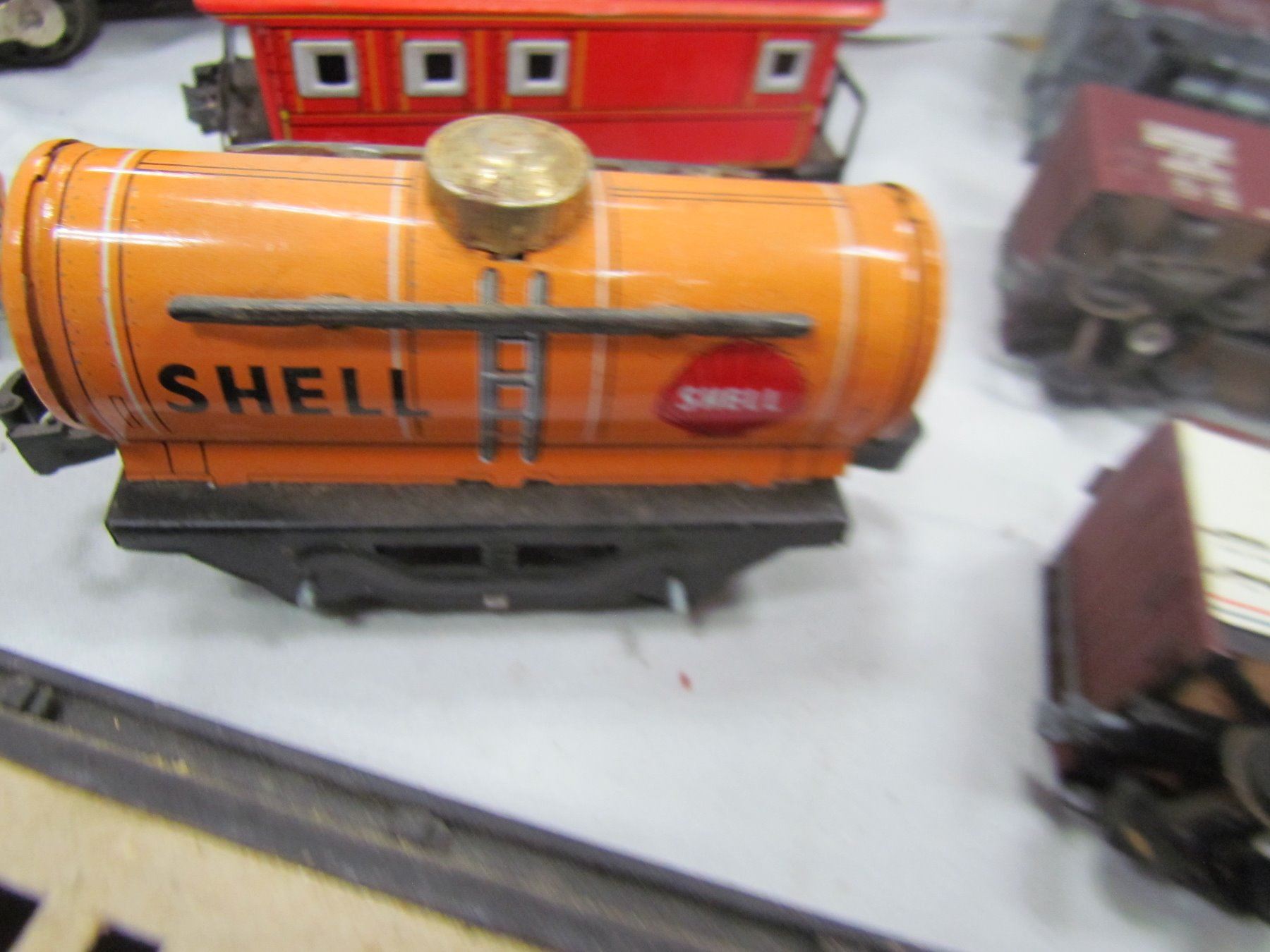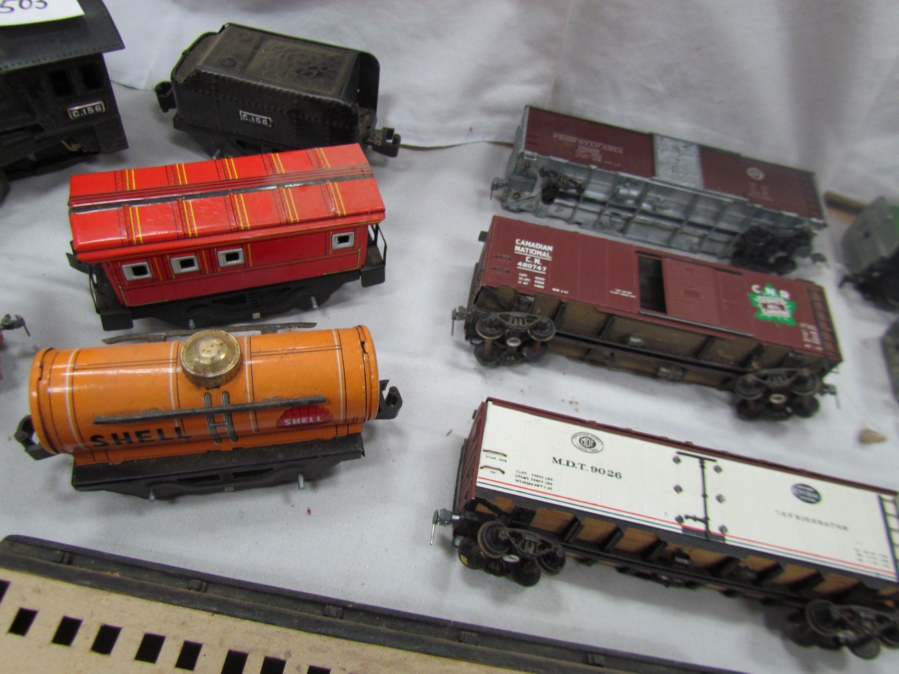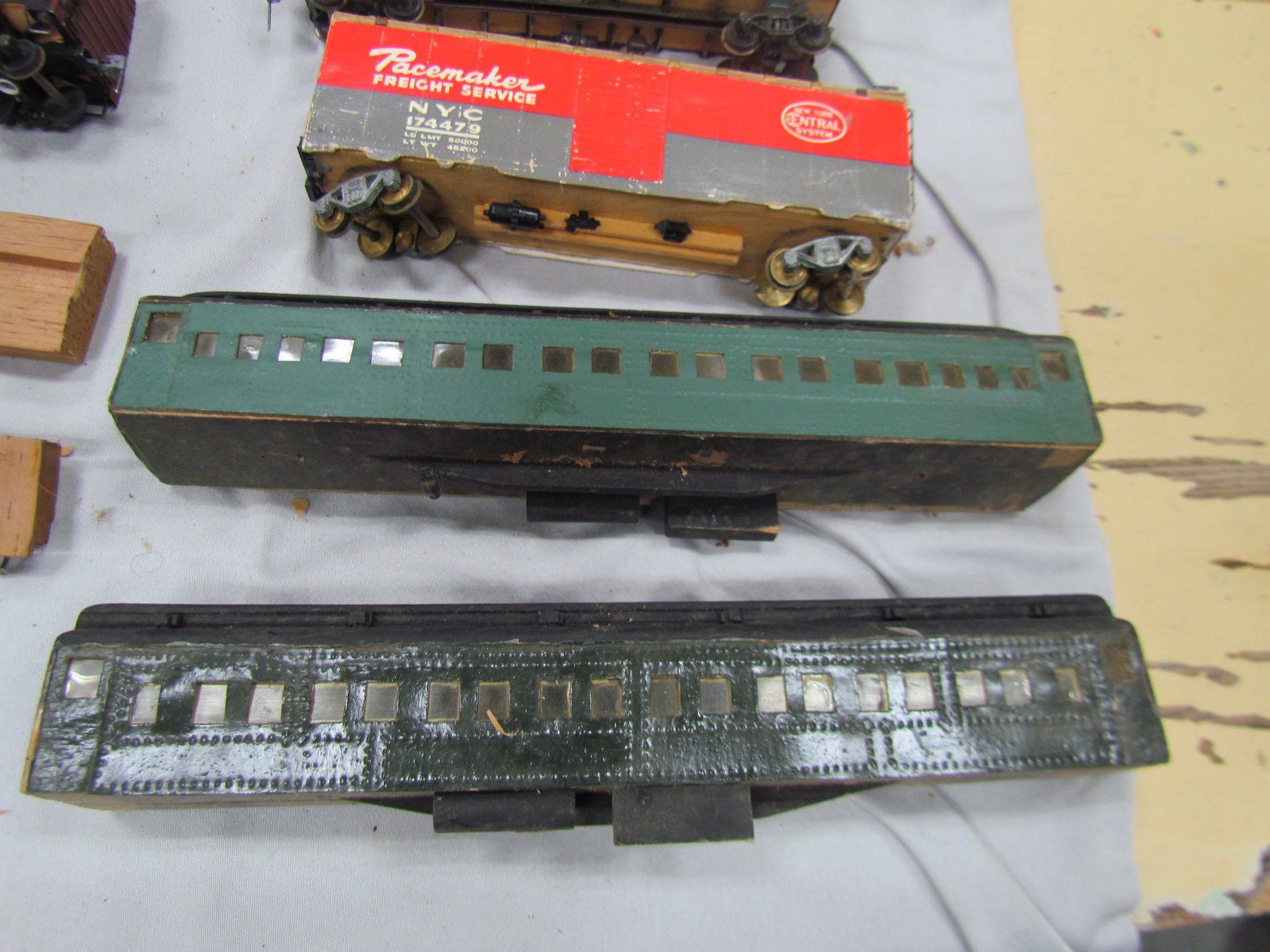 LOT OF 17 TOY TRAIN CARS ( ENGINES, CABOOSE, ETC…)
