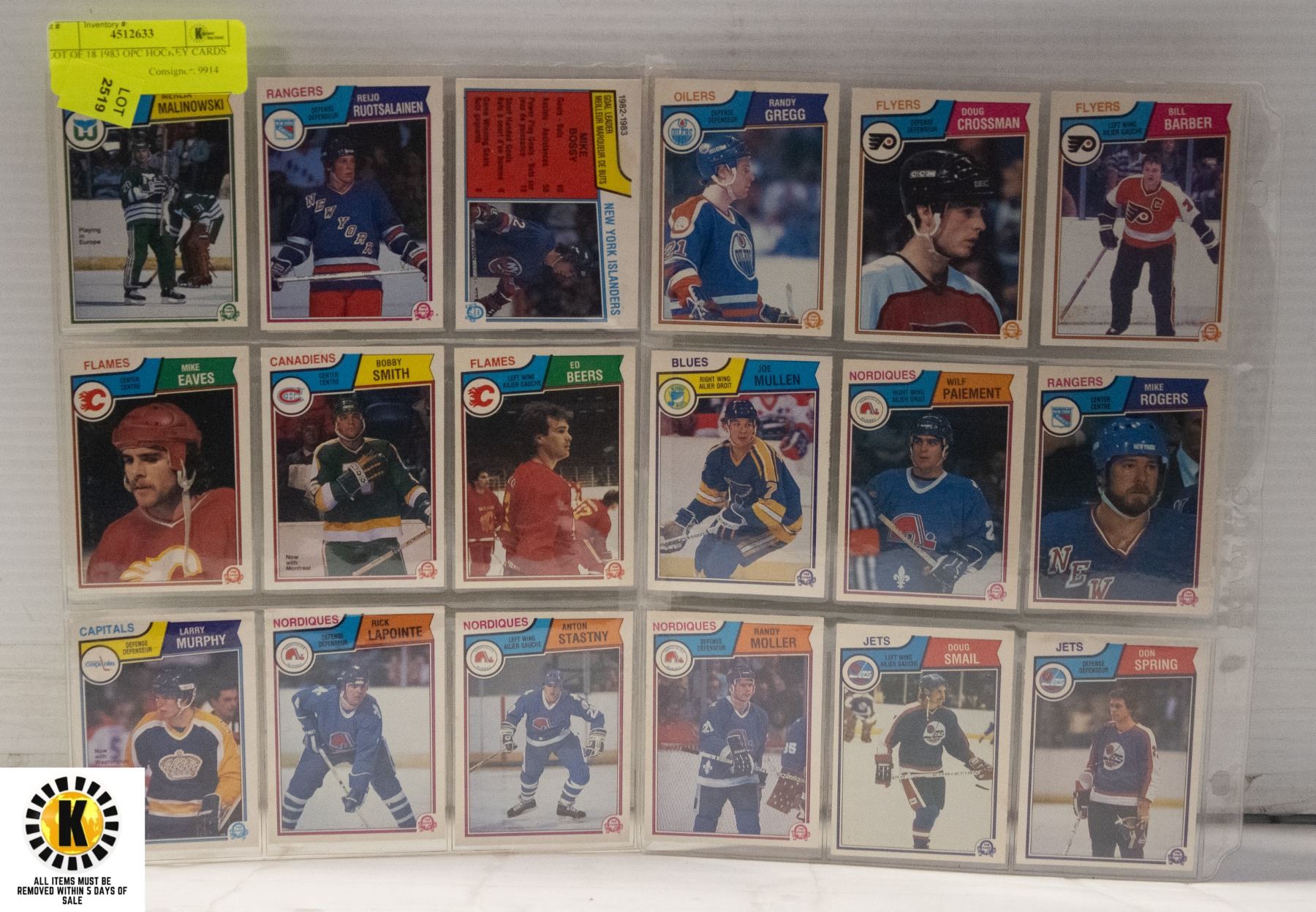 LOT OF 18 1983 OPC HOCKEY CARDS