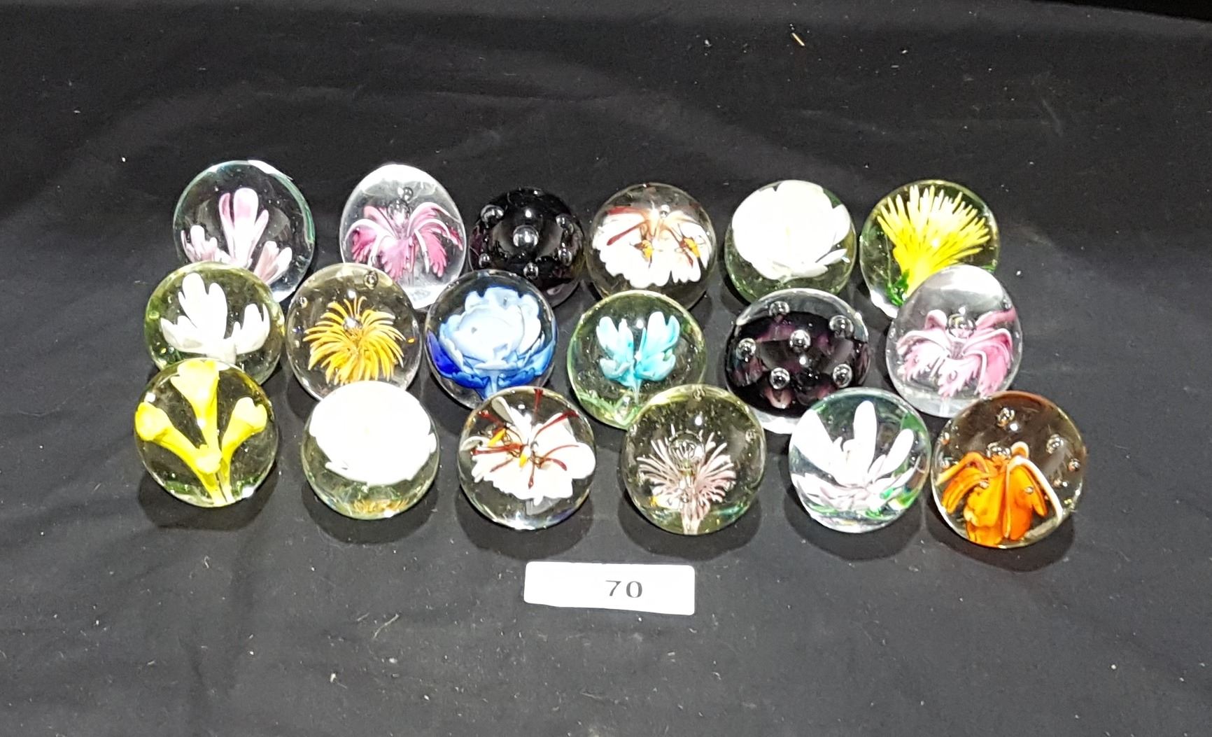LOT OF 18 ART GLASS PAPER WEIGHTS
