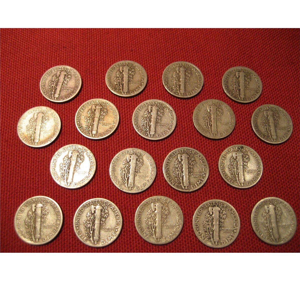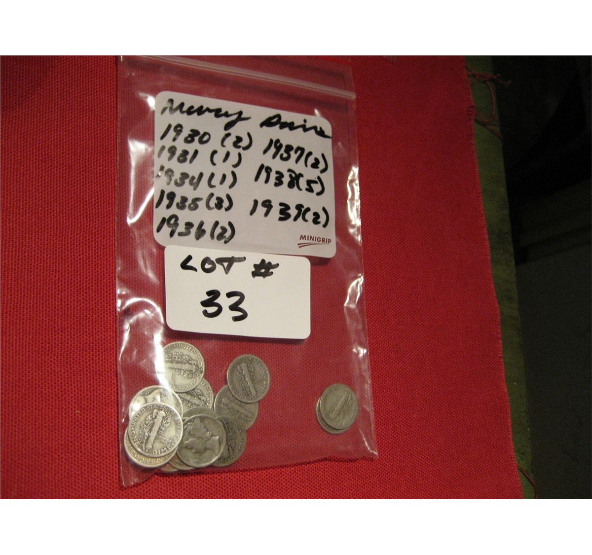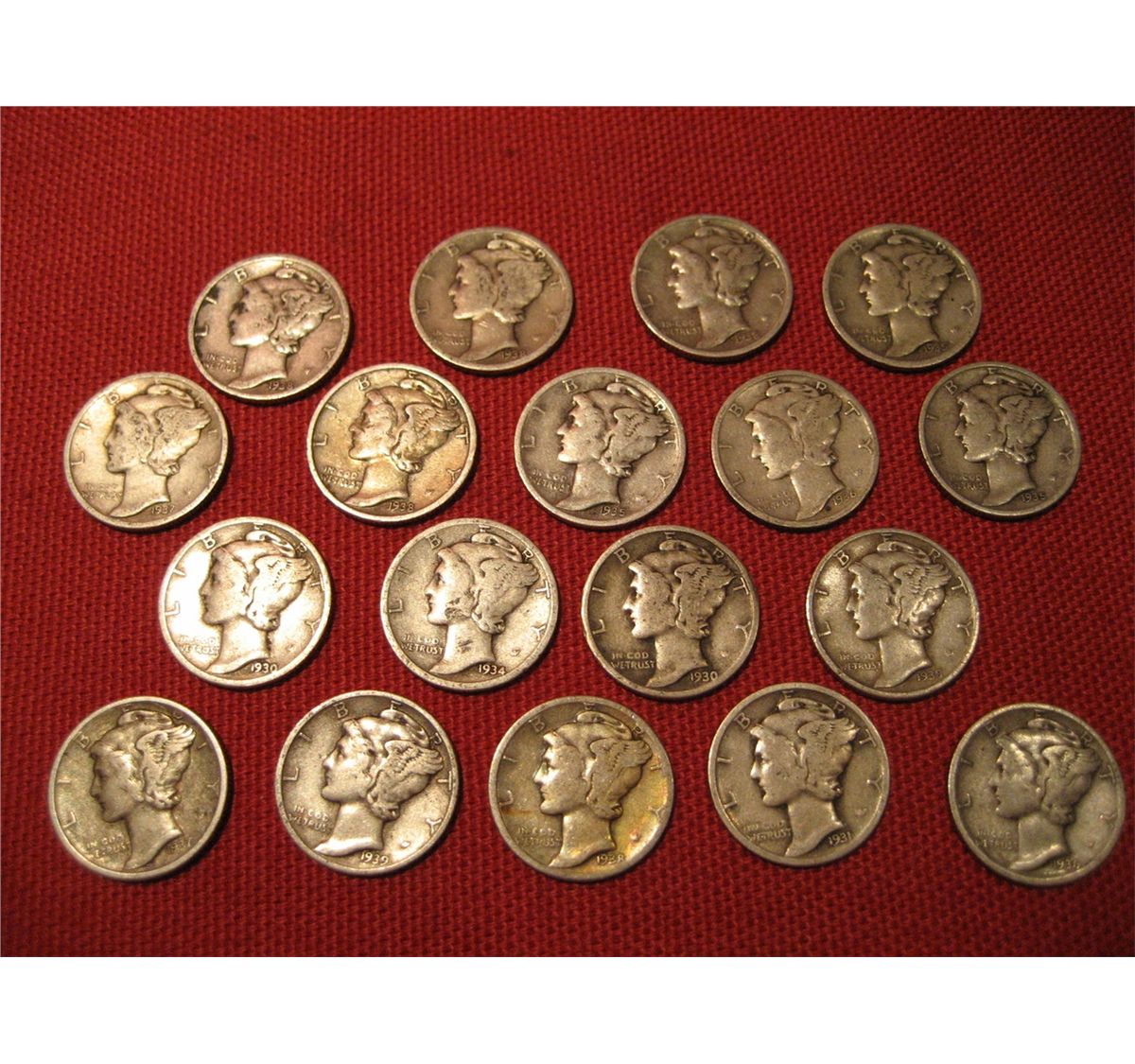 DATES: (2) 1930,(1)1931,(1)1934, (3)1935, (2)1936, (2)1937, (5)1938, (2)1939 MERCURY DIMES 90% SILVER