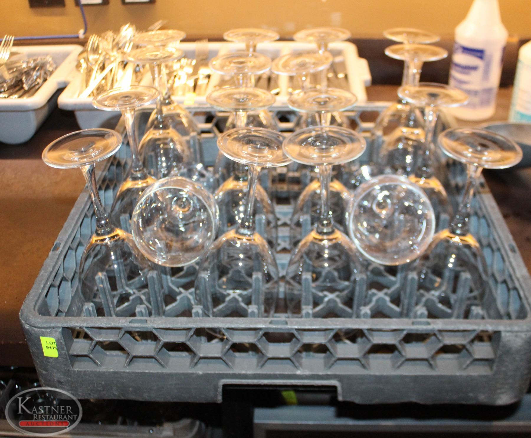 LOT OF 18 WINE GLASSES WITH DISH RACK