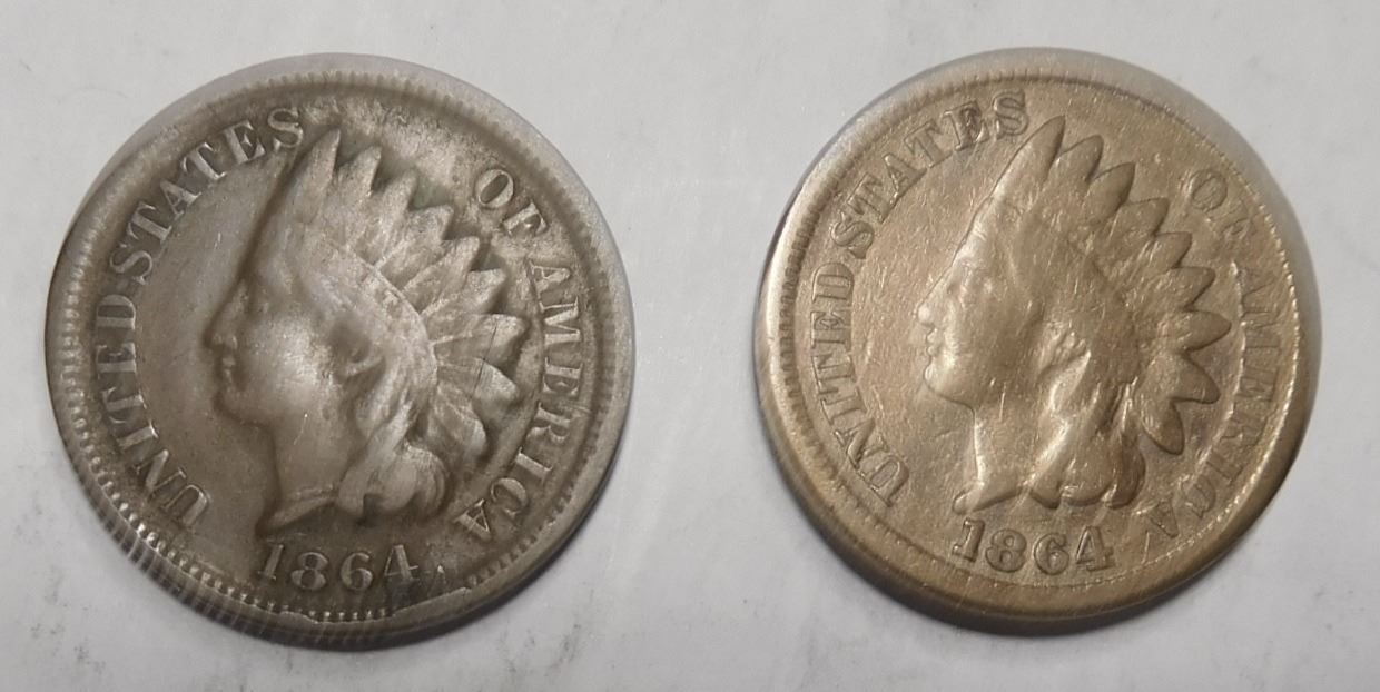 LOT OF 1864 BR & 1864 CN INDIAN HEAD CENTS G/VG (2 COINS)
