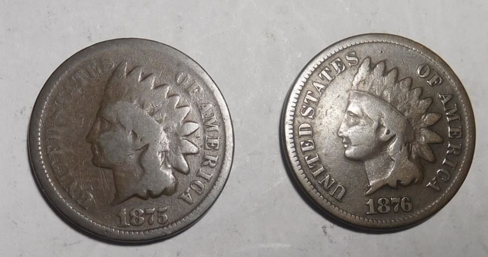 LOT OF 1875 & 1876 INDIAN HEAD CENTS G/VG (2 COINS)