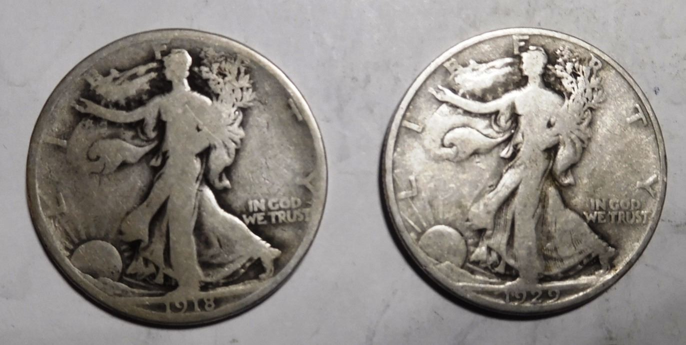 LOT OF 1918-S & 1929-D WALKER HALF DOLLARS G/VG (2 COINS)