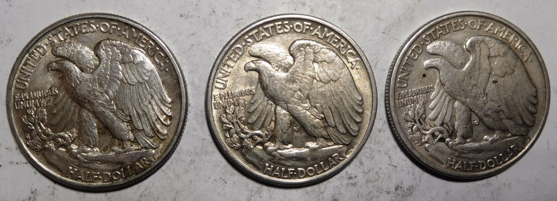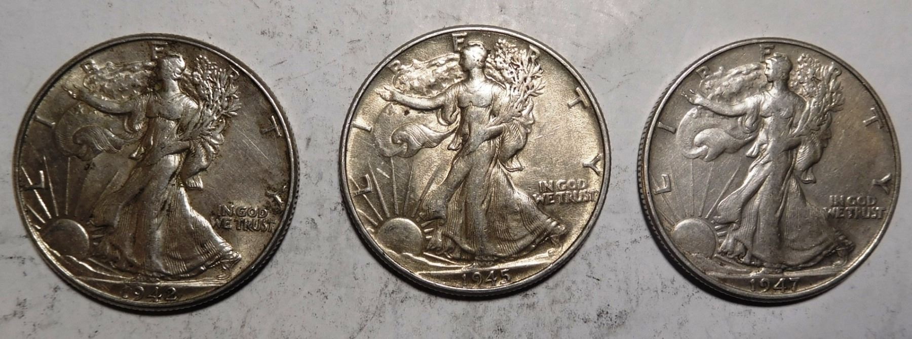 LOT OF 1942, 1945 & 1947 AU-58 WALKER HALF DOLLARS (3 COINS)