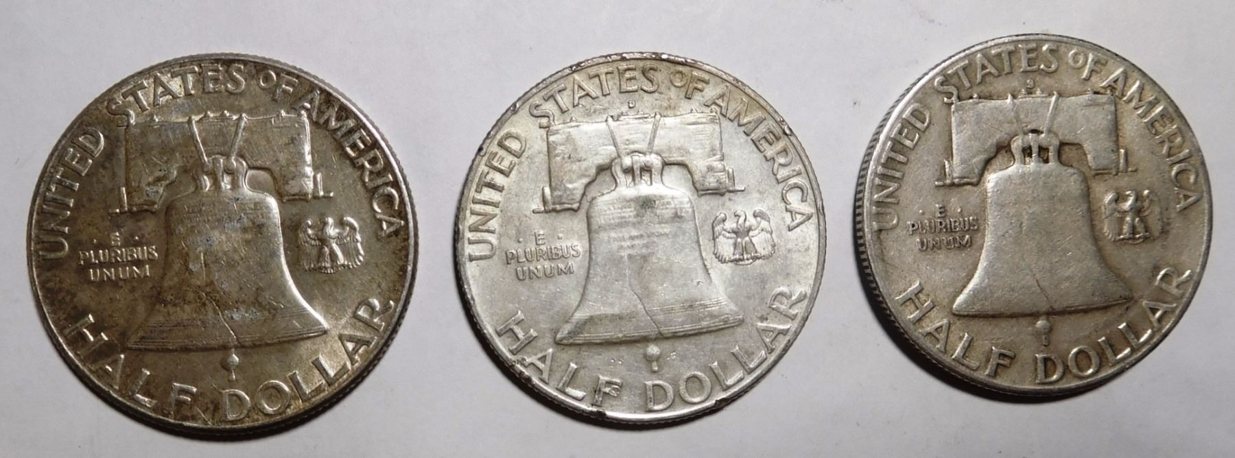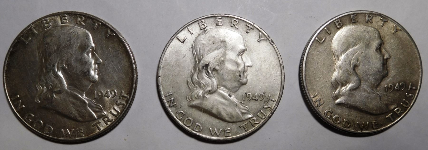 LOT OF 1949PDS FRANKLIN HALF DOLLARS VF-AU (3 COINS)