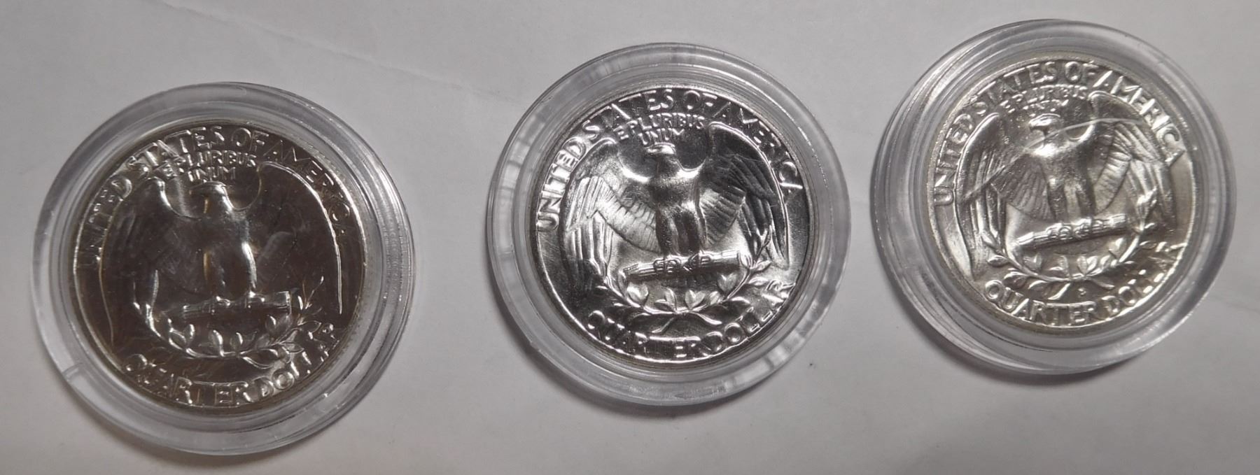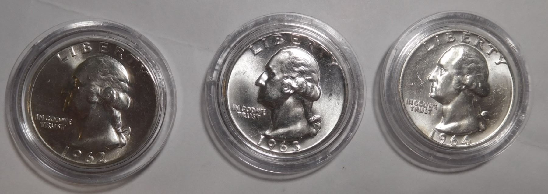 LOT OF 1962-1964 WASHINGTON QTRS. GEM BU (3 COINS)